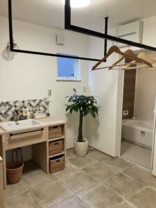 お風呂の横に洗面台と大きなランドリールームが設置されていました。